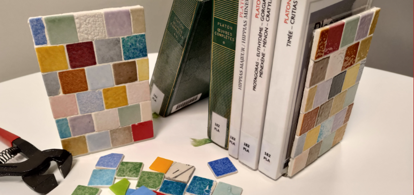 Pour tenir votre Pile à Lire ou pour décorer vos étagères débordantes, venez vous initier à la mosaïque en personnalisant des serre-livres ! Ils seront du plus bel effet dans votre bibliothèque !