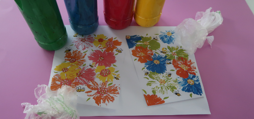Après une lecture d’albums sur la relation parent/enfant, nous réaliserons de jolies fleurs de toutes les couleurs pour offrir à sa mère ou son père. Pour cet atelier, pas de pinceau, les enfants utiliseront un sac plastique noué et gonflé trempé dans de la peinture.